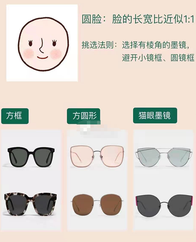 圆脸女生最大的标准就是面部线条较为流畅,那是因为面部胶原蛋白太多,导致面部不够立体。他选择墨镜形状的时候,这两条选有棱角的。