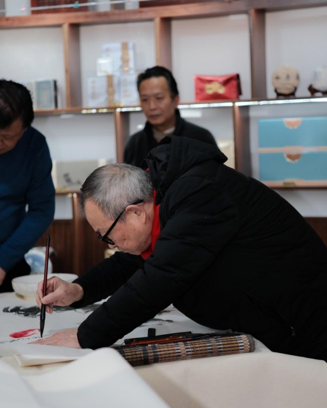 作为红色文化驿站,三人行茶楼兼具多元服务与文化质感,除茶叶售卖、简餐供应、棋牌休闲等便民项目外,亦着力营造雅致文化氛围。此次邀约书画名家莅临,旨在以传统文化为纽带,搭建邻里交流互动的桥梁,于辞旧迎新之际,传递新春暖意与艺术芬芳。